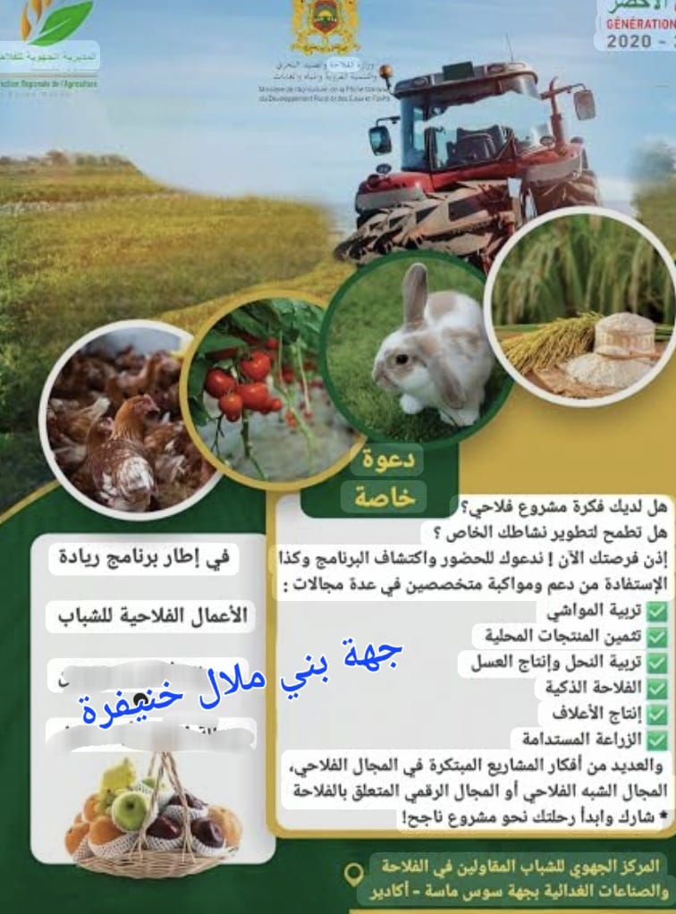 ويأتي هذا اللقاء في سياق تنزيل برنامج “الريادة في الفلاحة والصناعات الغذائية”، الذي يروم تشجيع الشباب على ولوج عالم المقاولة الفلاحية، من خلال مواكبتهم في مختلف مراحل مشاريعهم، من بلورة الفكرة إلى مرحلة التنفيذ والاستدامة.
