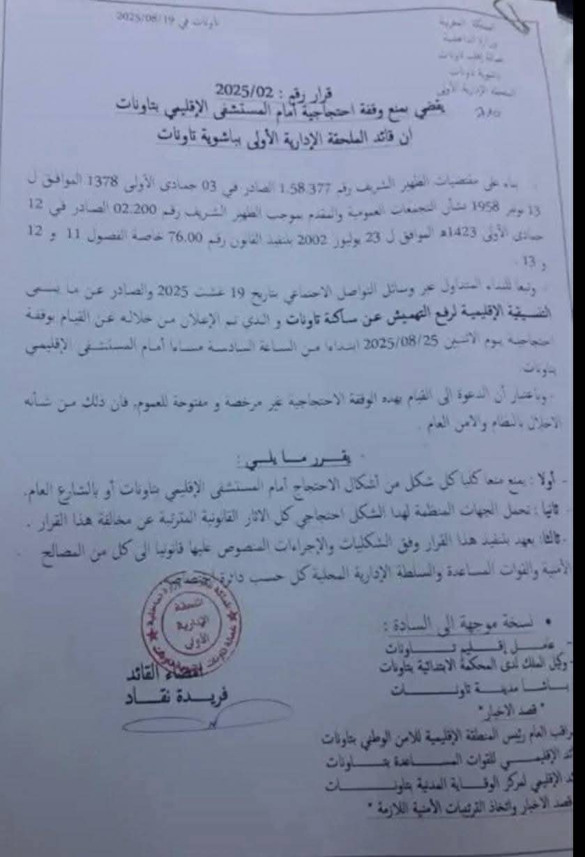 وتأتي هذه الوقفة، التي نُظمت رغم قرار المنع الصادر عن السلطات المحلية، للتأكيد على مطلب الساكنة بتحسين العرض الصحي وتوفير التجهيزات والموارد البشرية الضرورية لضمان خدمات استشفائية تستجيب لحاجيات المرضى داخل الإقليم.