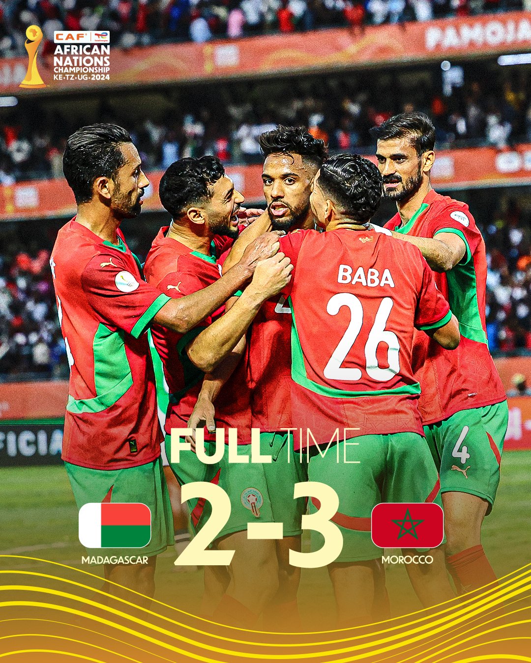 وفي الأنفاس الأخيرة، كاد منتخب مدغشقر أن يفرض الأشواط الإضافية، لولا تصدٍ إعجازي من الحارس المهدي الحرار في الدقيقة 94، حافظ به على اللقب. لحظة تاريخية ختمها الحكم بصافرة النهاية، ليعلن المغرب بطلاً للـCHAN للمرة الثالثة في تاريخه (2018، 2020، 2025)، ويؤكد هيمنته على المسابقة.