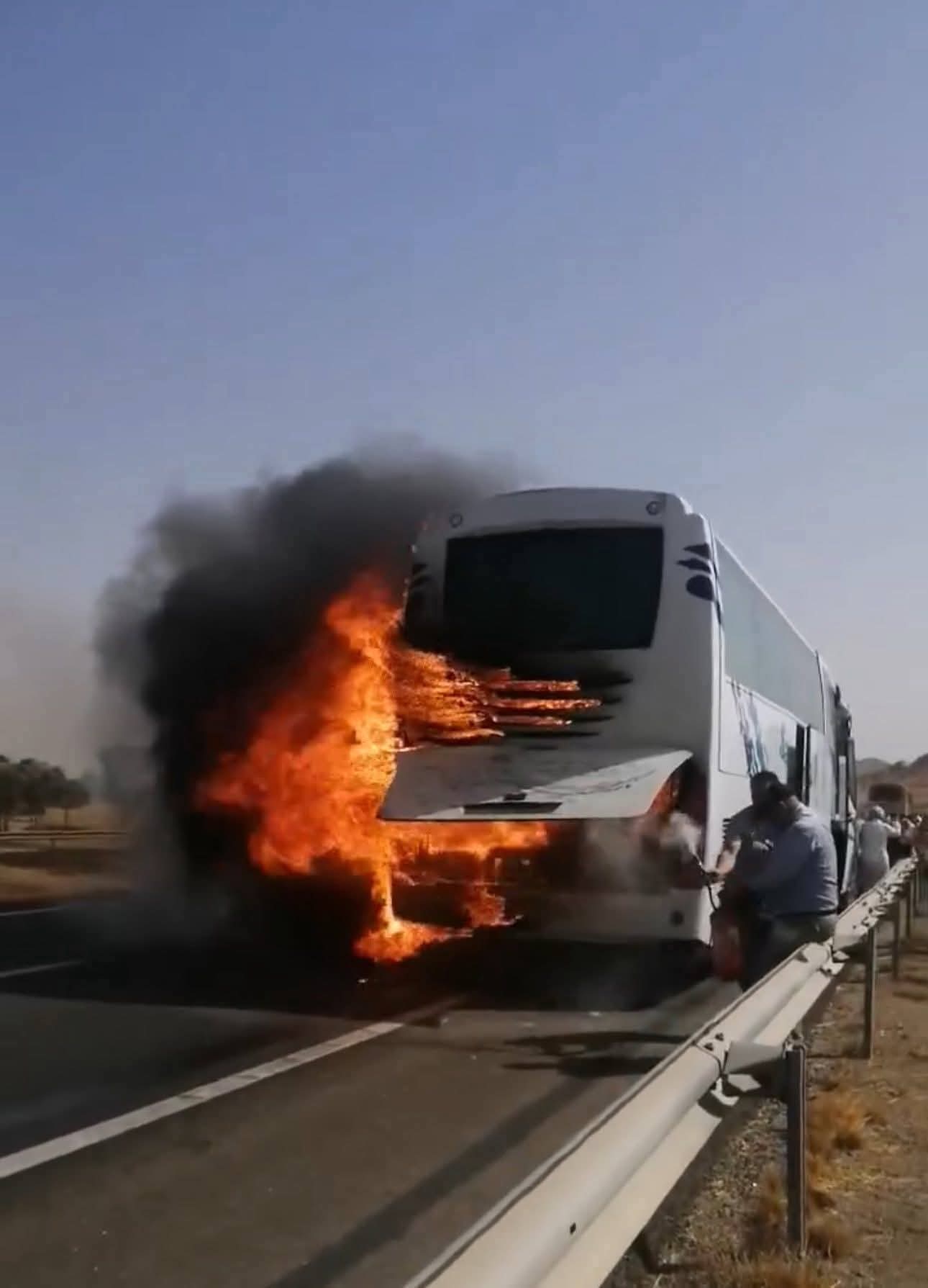 اندلع حريق مفاجئ صباح اليوم بحافلة لنقل المسافرين على مستوى الطريق السيار بمدخل مدينة صخور الرحامنة، مما أدى إلى تدمير كبير لهيكل الحافلة دون أن تُسجل أي إصابات في صفوف الركاب أو السائق.