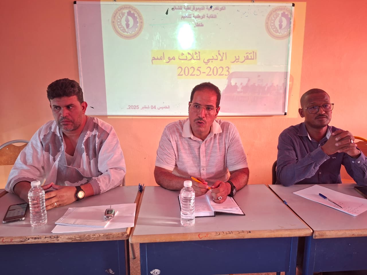 من جهته، أشاد النعمة الغازي الكاتب الجهوي للنقابة بأداء المكتب الإقليمي، معتبرًا أن هذه المحطة التنظيمية هي فرصة لتجديد الجهود وتوحيد الصفوف في المرحلة القادمة. مشيرا أن المكتب الإقليمي كان في السنوات الثلاث الماضية نموذجًا للعمل النقابي الجاد والمثمر. إن الحفاظ على هذه القوة والمصداقية هو ما سيمنحه القدرة على مواصلة النضال وتحقيق المزيد من المكاسب لشغيلة التعليم.
