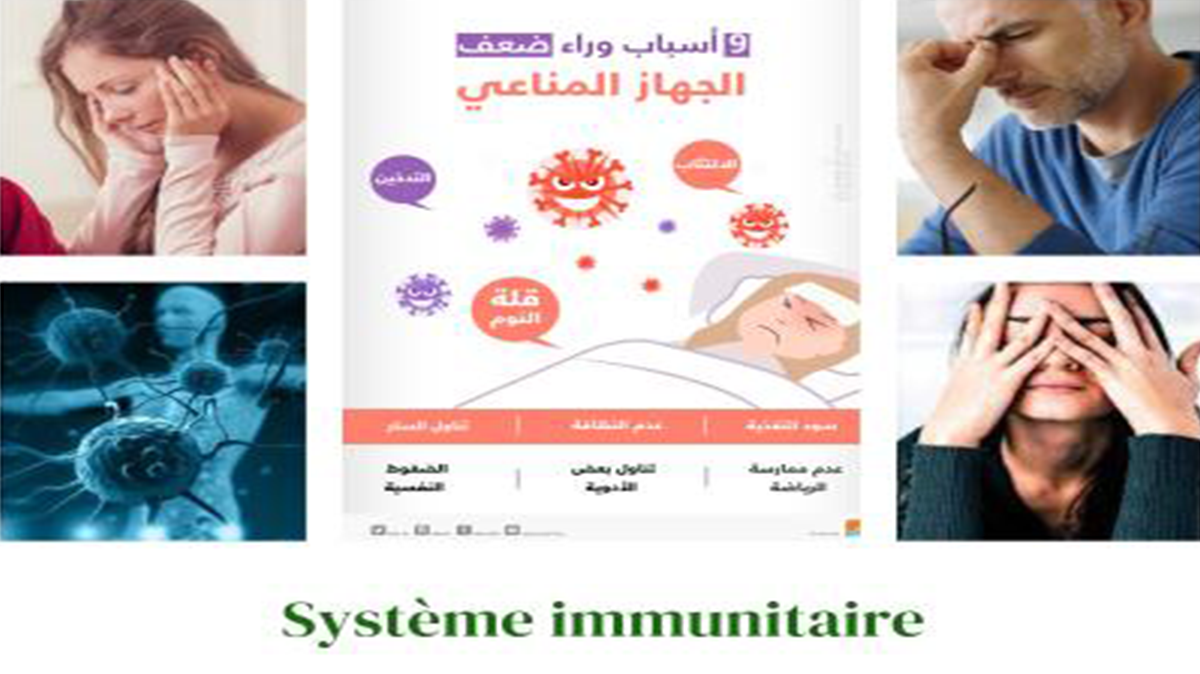 ينتج عن ضعف جهاز المناعة système immunitaire حصول زيادة في فرص الإصابة بمختلف الأمراض. الأمر الذي يستوجب العمل على تقوية هذا الجهاز حتى يتمكن من أداء دوره في ضمان سلامة الأبدان.